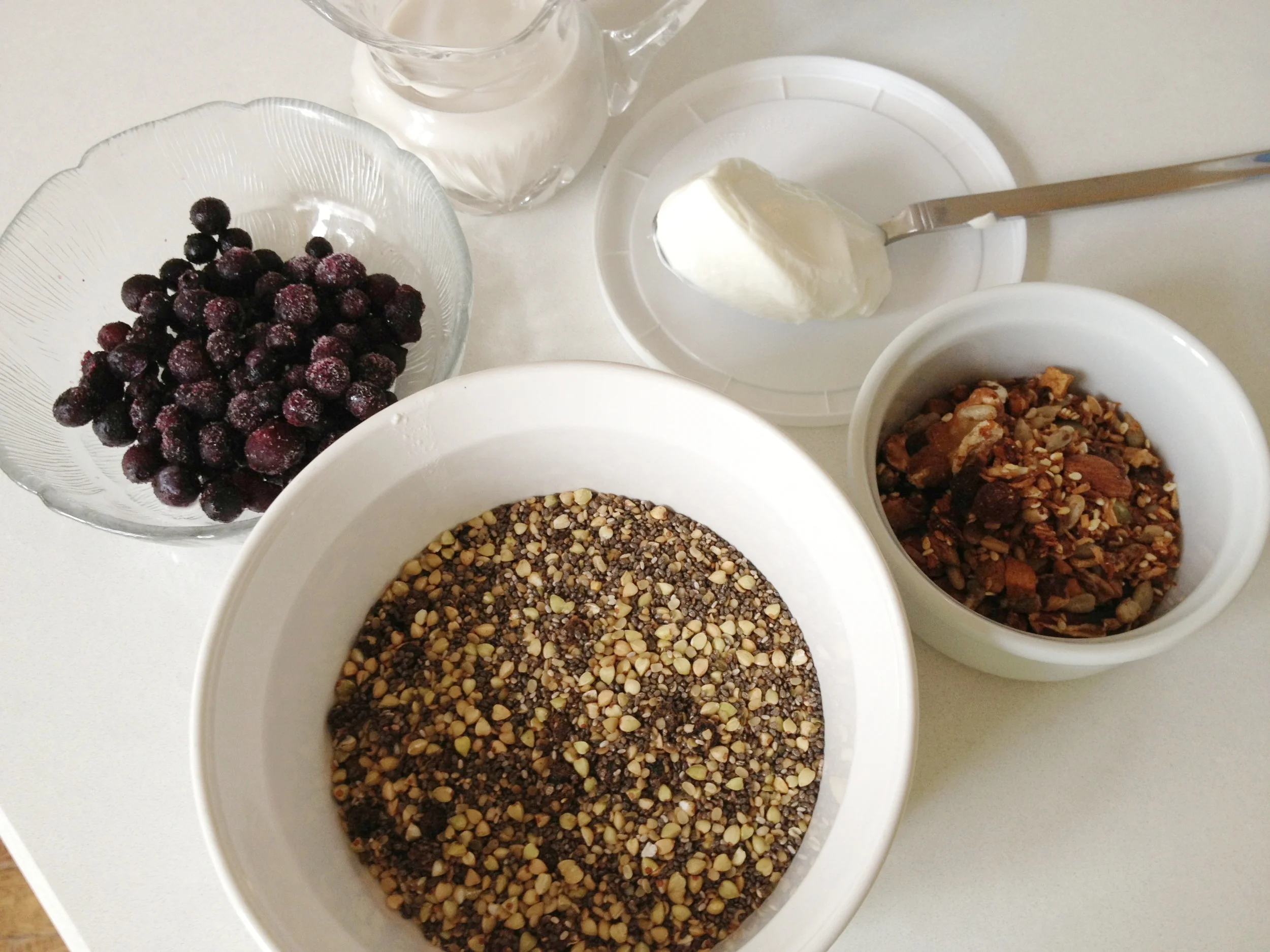 When ready to eat, cover your serving with your favourite milk. Let sit for 4 minutes. Add fruit (I love pomegranate seeds, blueberries or mango on it), nuts or granola (my fav is grain-free JK Gourmet) and yogurt (or for those who are dairy-free, cultured coconut - Yoso is the best) or more milk.